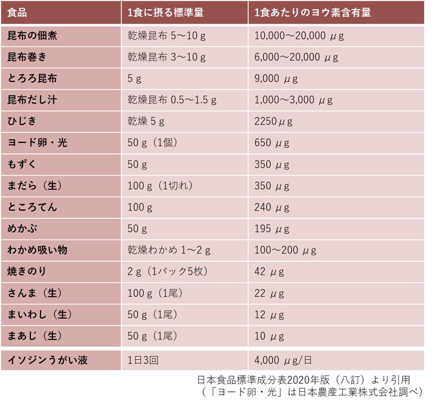 ヨウ素を多く含む代表的なものは「昆布」「ひじき」などの海藻類や「イソジンうがい液」で、これらを続けて摂取することをやめれば、甲状腺機能は回復します。